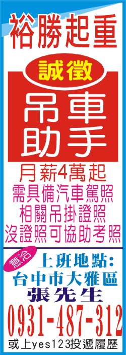 裕勝起重誠徵吊車助手